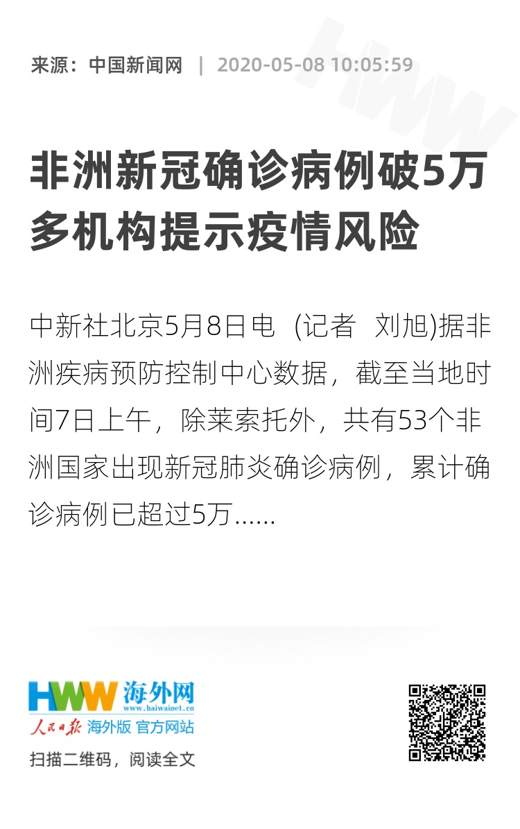 非洲新冠确诊病例破5万 多机构提示疫情风险