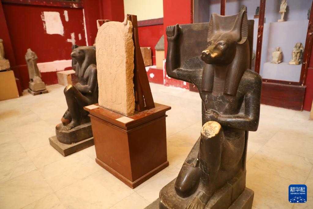 这是5月14日在位于埃及开罗的埃及博物馆拍摄的一尊“阿努比斯”雕像。
