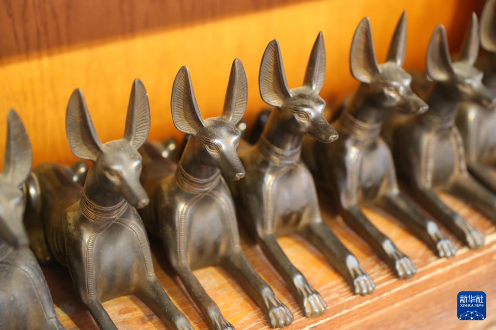 这是5月14日在位于埃及开罗的埃及博物馆纪念品店拍摄的图坦卡蒙墓中出土的“阿努比斯”文创产品。