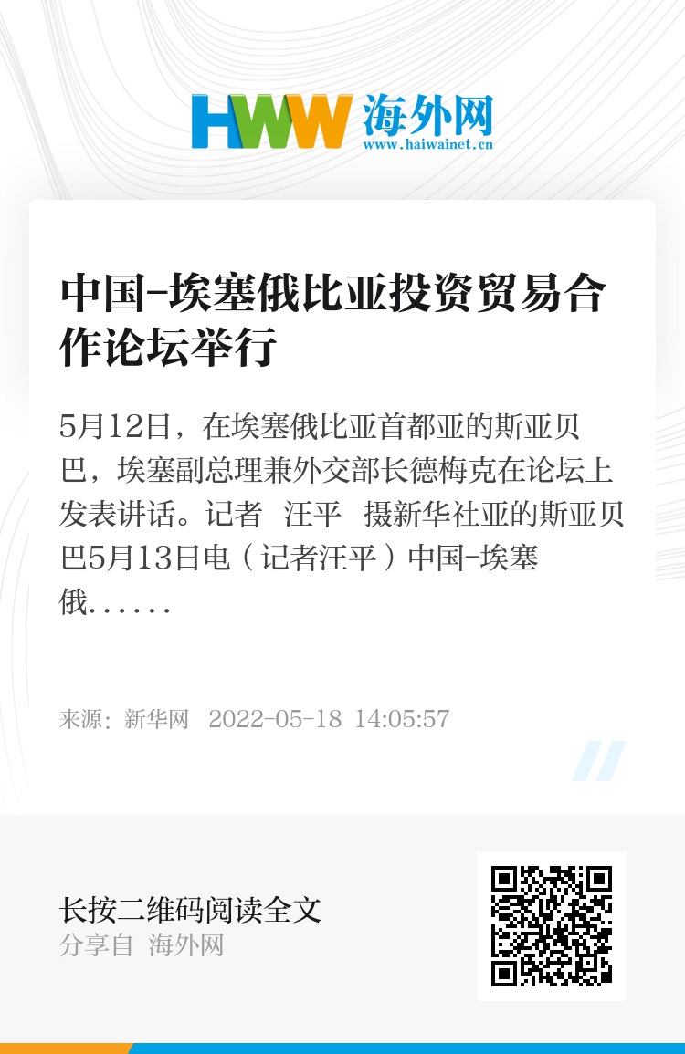 新华社亚的斯亚贝巴5月13日电(记者汪平)中国-埃塞俄比亚投资贸易合作论坛12日在亚的斯亚贝巴举行。与会代表认为,中埃经贸合作势头良好且潜力巨大,进一步扩大投资和贸易合作将实现互利共赢。