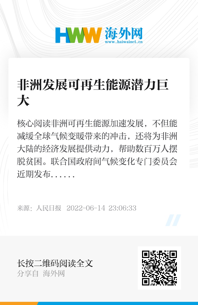 非洲可再生能源加速发展,不但能减缓全球气候变暖带来的冲击,还将为非洲大陆的经济发展提供动力,帮助数百万人摆脱贫困。