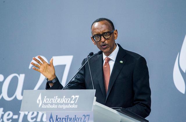2021年4月7日,卢旺达总统卡加梅在基加利举行的大屠杀27周年纪念活动上发表讲话。新华社发(西里尔·恩德格亚摄)