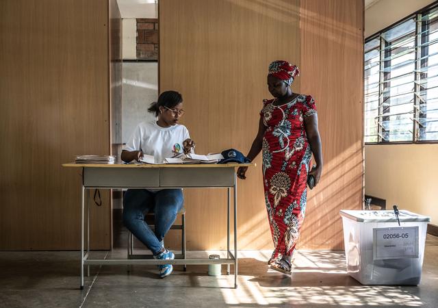 7月15日,一名选民在卢旺达基加利一处投票站内领取选票。新华社记者王冠森摄