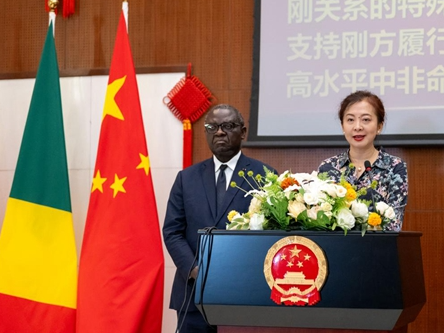 中国驻刚果(布)大使李岩致辞。记者郑扬子 摄