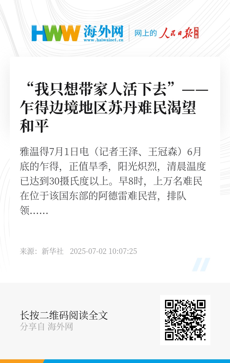 新华社雅温得7月1日电(记者王泽、王冠森)6月底的乍得,正值旱季,阳光炽烈,清晨温度已达到30摄氏度以上。早8时,上万名难民在位于该国东部的阿德雷难民营,排队领取高粱、盐等基本生活物资,其中大部分是妇女和儿童。