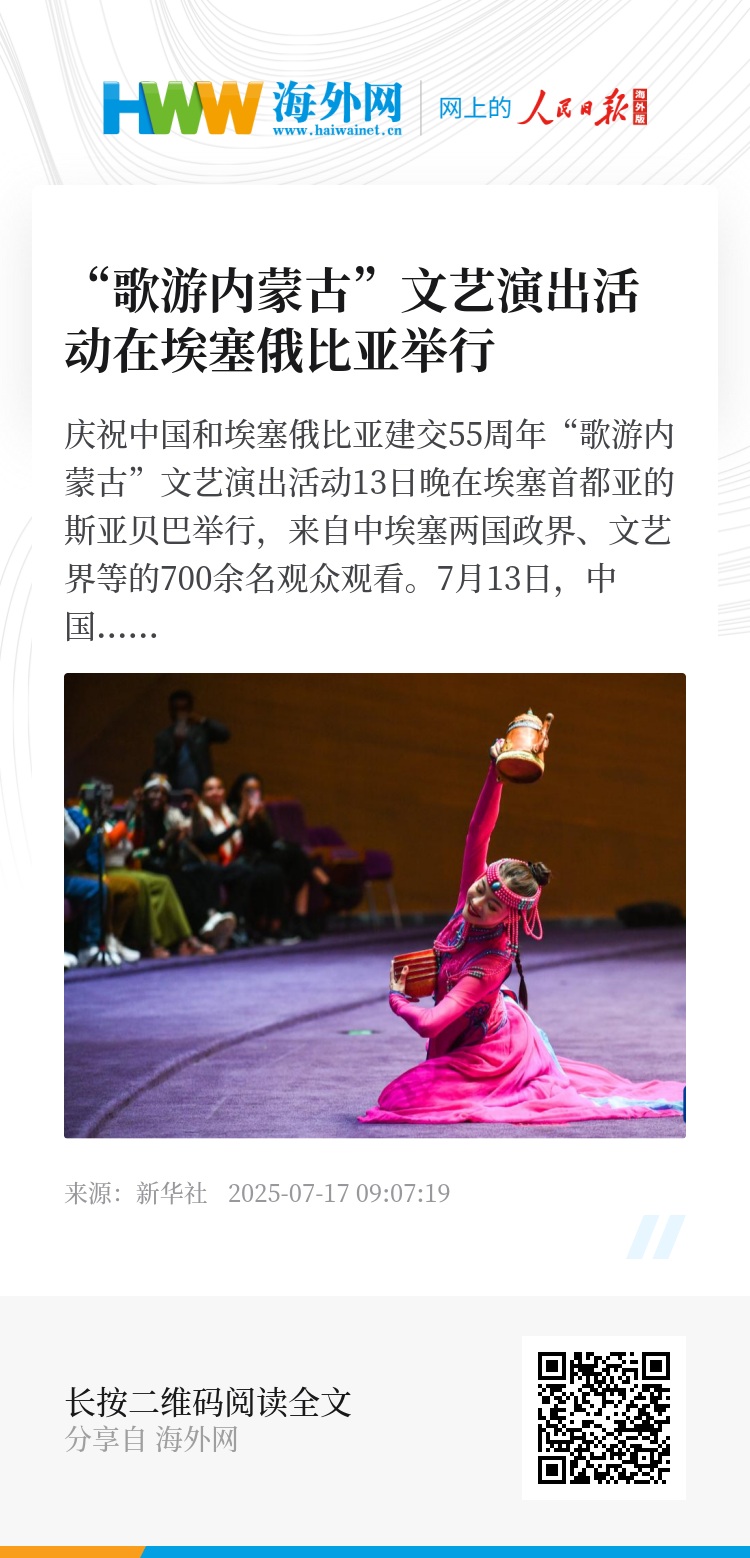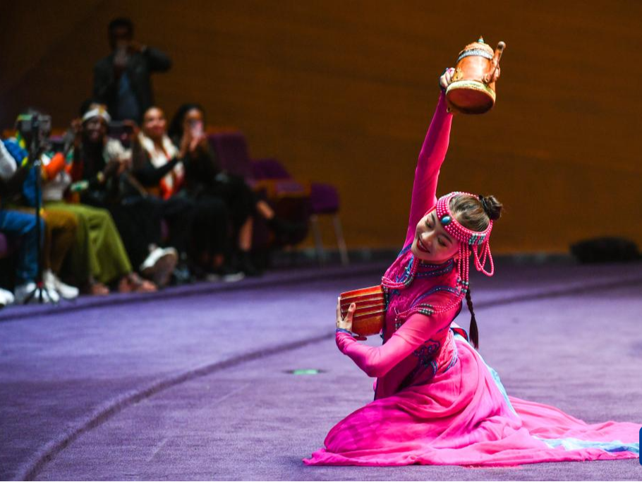 7月13日,中国内蒙古自治区的艺术家在埃塞俄比亚首都亚的斯亚贝巴演出。 新华社发(迈克尔·特韦尔德摄)