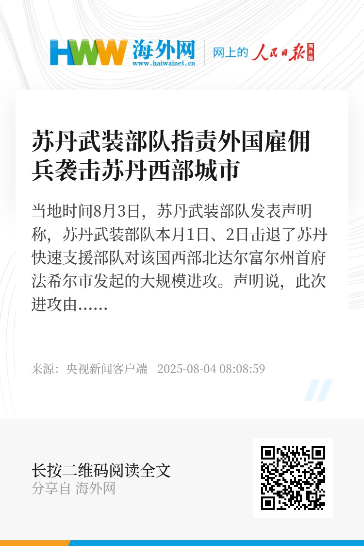 当地时间8月3日,苏丹武装部队发表声明称,苏丹武装部队本月1日、2日击退了苏丹快速支援部队对该国西部北达尔富尔州首府法希尔市发起的大规模进攻。