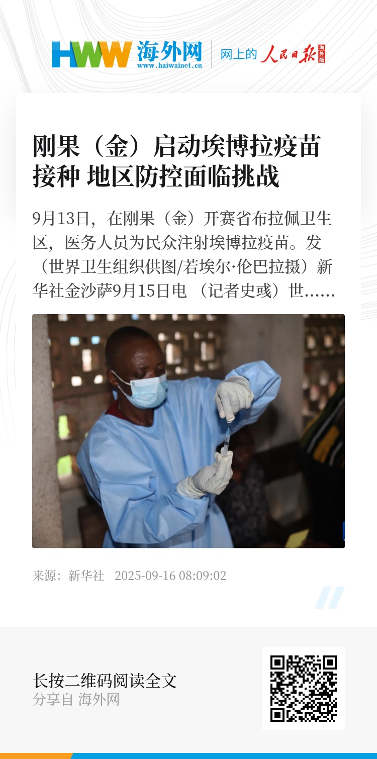 新华社金沙萨9月15日电 (记者史彧)世界卫生组织14日宣布,刚果(金)开赛省布拉佩卫生区已启动针对埃博拉病毒的疫苗接种,以应对本月初暴发的新一轮埃博拉疫情。有关卫生官员表示,目前疫情形势严峻,存在跨境传播风险。