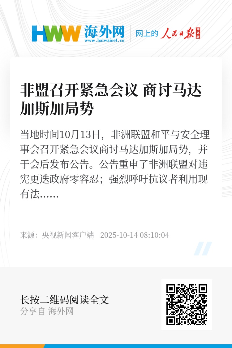 当地时间10月13日,非洲联盟和平与安全理事会召开紧急会议商讨马达加斯加局势,并于会后发布公告。