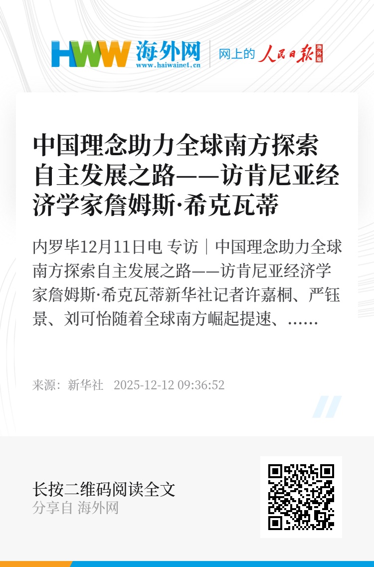 新华社内罗毕12月11日电 专访|中国理念助力全球南方探索自主发展之路——访肯尼亚经济学家詹姆斯·希克瓦蒂