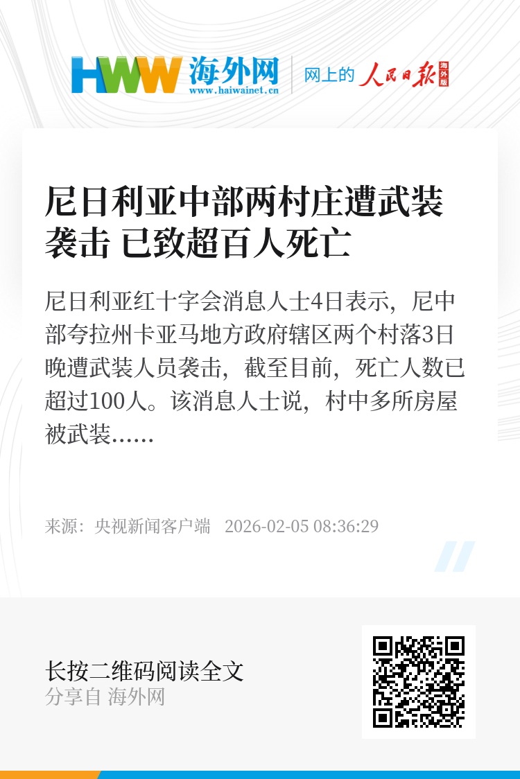 该消息人士说,村中多所房屋被武装人员焚毁。目前,尼安全机构已进驻并接管当地,搜救行动仍在进行。