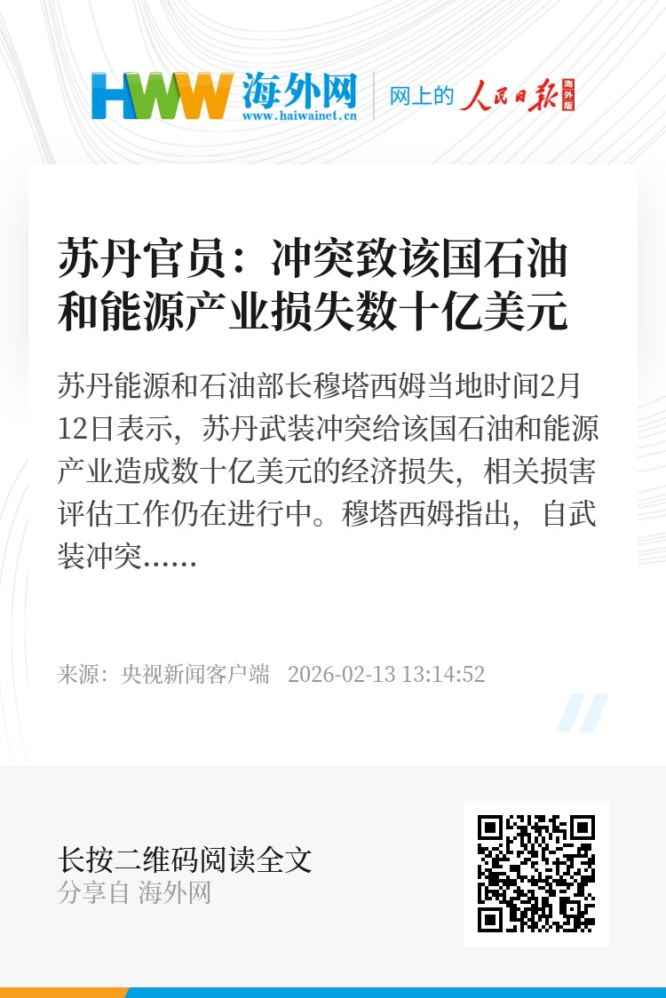 苏丹能源和石油部长穆塔西姆当地时间2月12日表示,苏丹武装冲突给该国石油和能源产业造成数十亿美元的经济损失,相关损害评估工作仍在进行中。