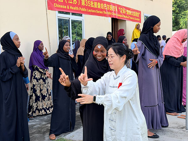 第35批援桑给巴尔中国医疗队队长包增涛表示:此次活动是中非人文交流年框架下的生动实践,既让当地民众感受中文魅力与中国文化温度,也通过中医养生文化传播拓展了中非合作维度,为构建人类卫生健康共同体注入鲜活力量。