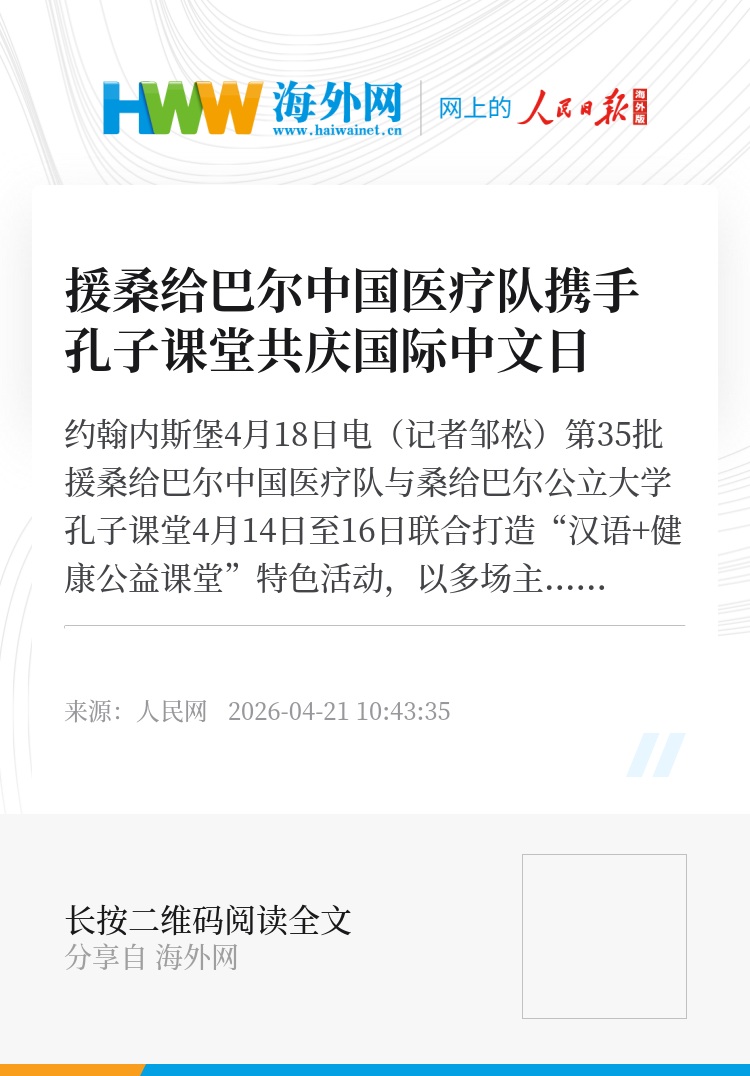 人民网约翰内斯堡4月18日电(记者邹松)第35批援桑给巴尔中国医疗队与桑给巴尔公立大学孔子课堂4月14日至16日联合打造“汉语+健康公益课堂”特色活动,以多场主题鲜明的国际中文日活动为纽带,将中文学习、艺术创作与中医养生深度融合。
